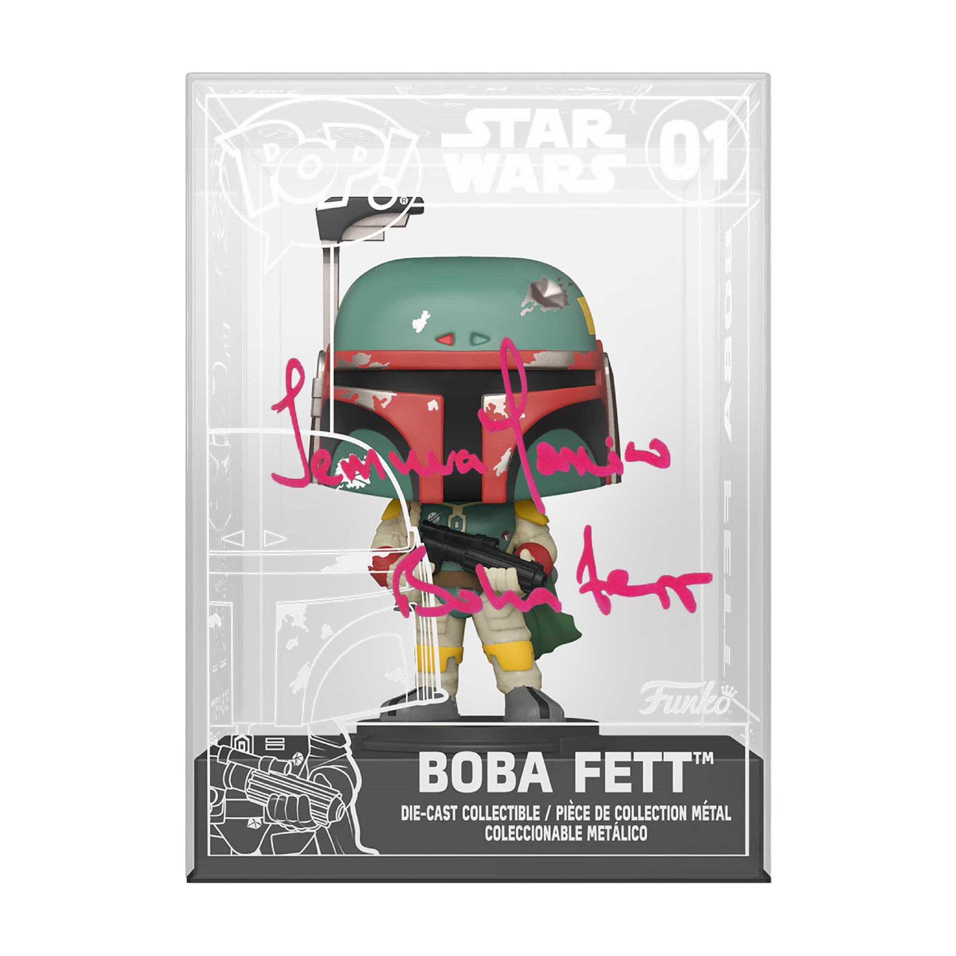 Boba Fett Die Cast Funko POP signed by the actor of Boba fett, Temuera Morrison.