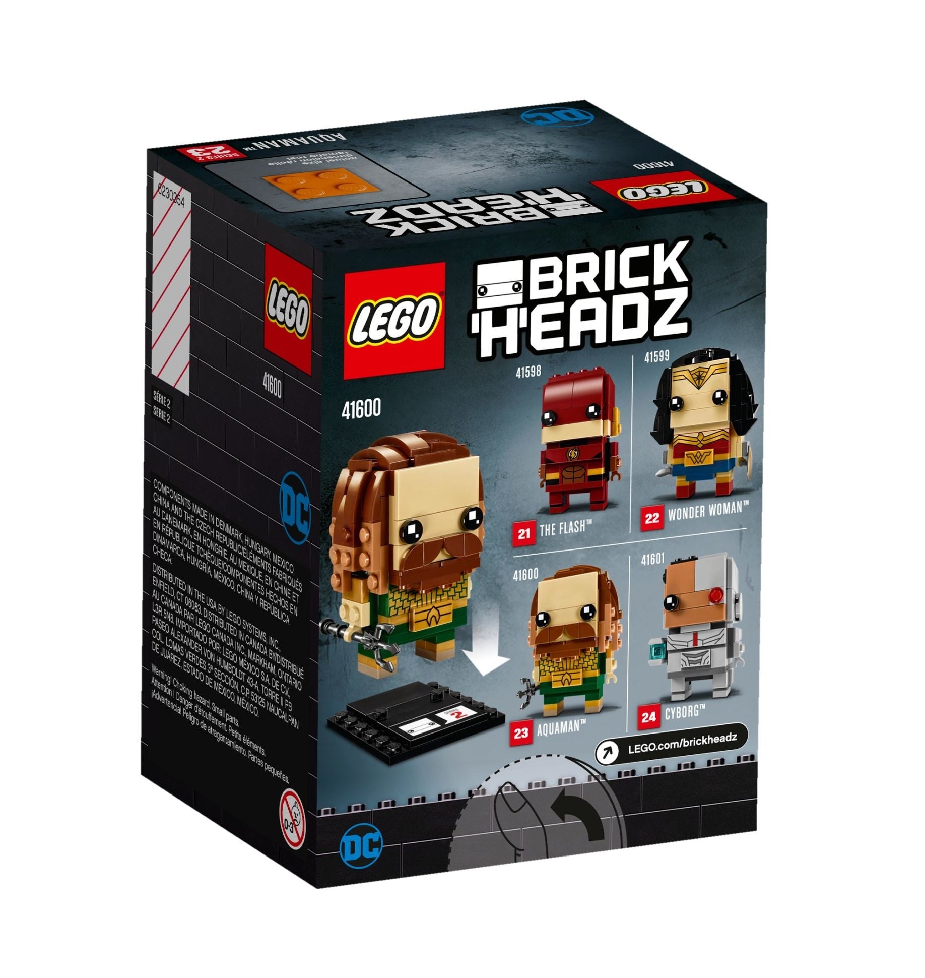 This Aquaman™ LEGO® BrickHeadz construction character is fun to build using colorful LEGO bricks that recreate all of his iconic details, including flowing beard and hair, scale-like armor and buckle. He also has a detachable trident and stands on a buildable collector's baseplate with BrickHeadz icon for easy display. Add a splash of Justice League excitement in your home, office or anywhere you like.