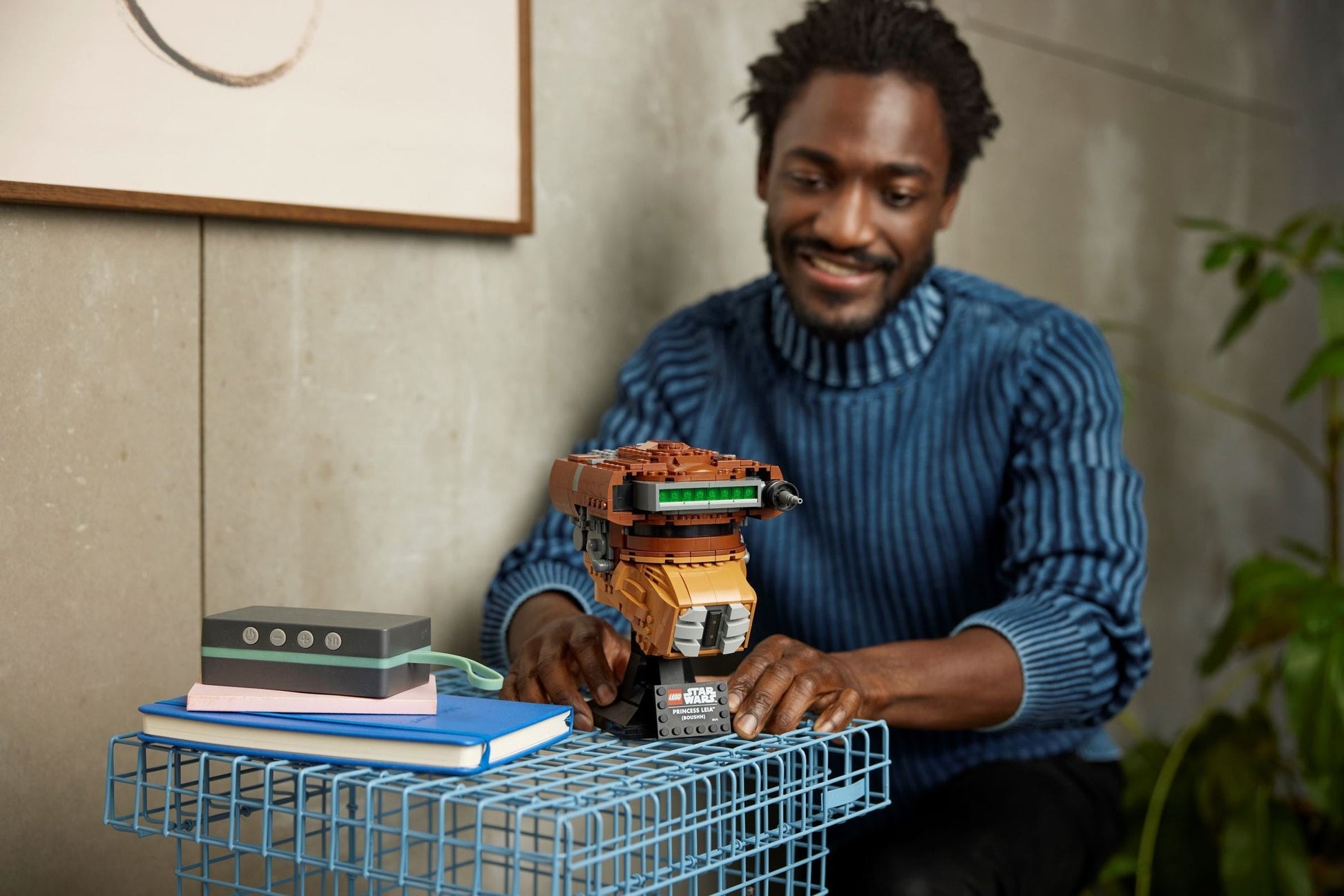 This collectible set marks the 40th anniversary of Star Wars: Return of the Jedi and is part of a series of LEGO Star Wars build-to-display helmet models. Find step-by-step instructions in the box and on the LEGO Builder app.