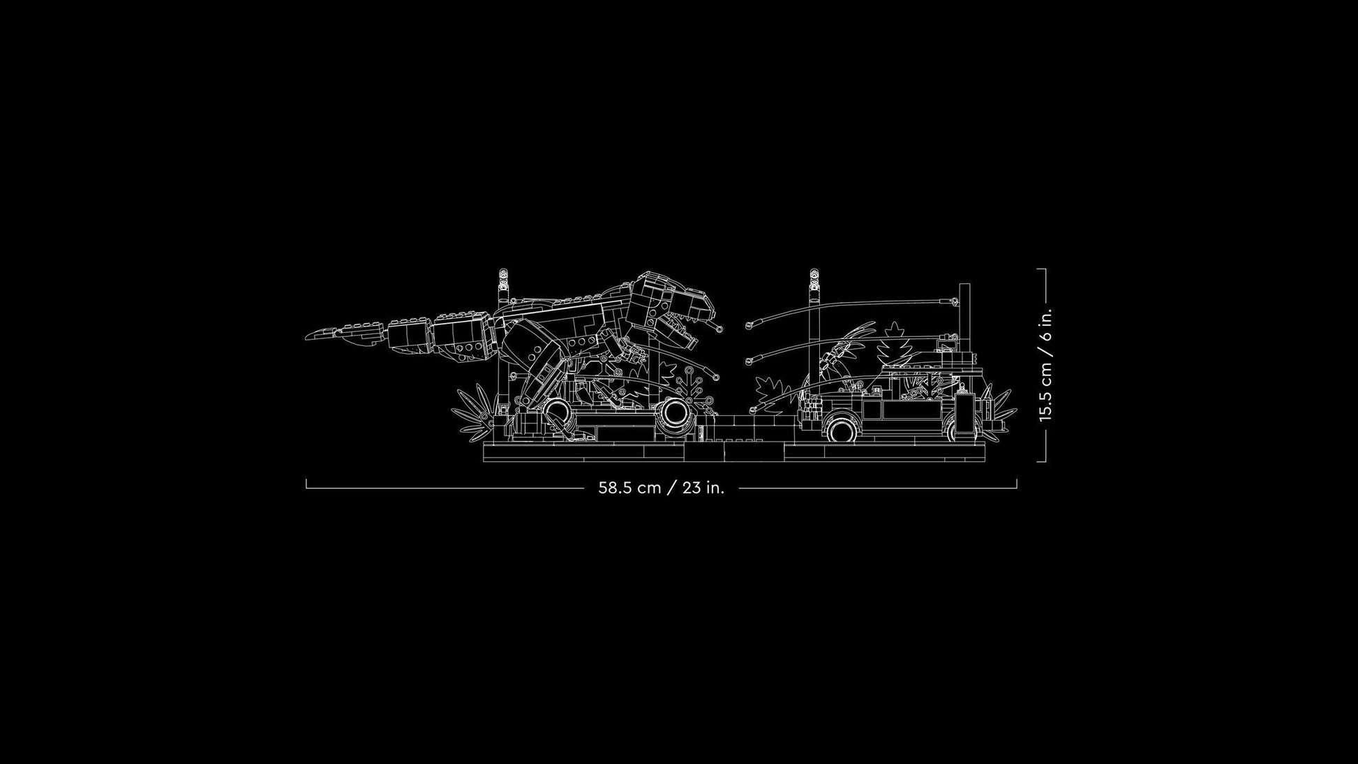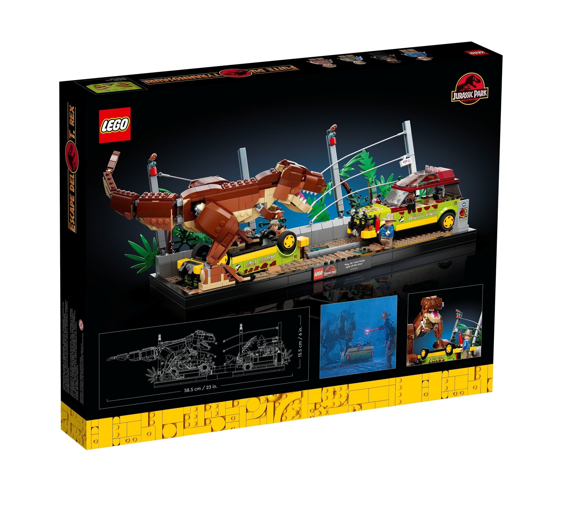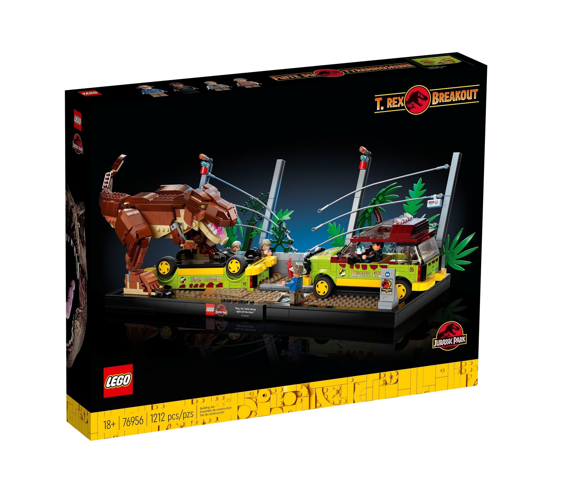 Ready to direct the action? This LEGO® Jurassic Park T. rex Breakout build-and-display model (76956) is as worthy of repeat viewing as the epic Jurassic Park movie scene that inspired it. It features a posable T. rex figure stomping on a flipped, crushed Ford Explorer, a second Ford Explorer and a smashed ‘electric’ fence. Recreate the drama with Alan Grant, Ian Malcolm, Tim Murphy and Lex Murphy minifigures, buildable night-vision goggles, a flare and 2 water glass elements, plus many other references to the famous scene.