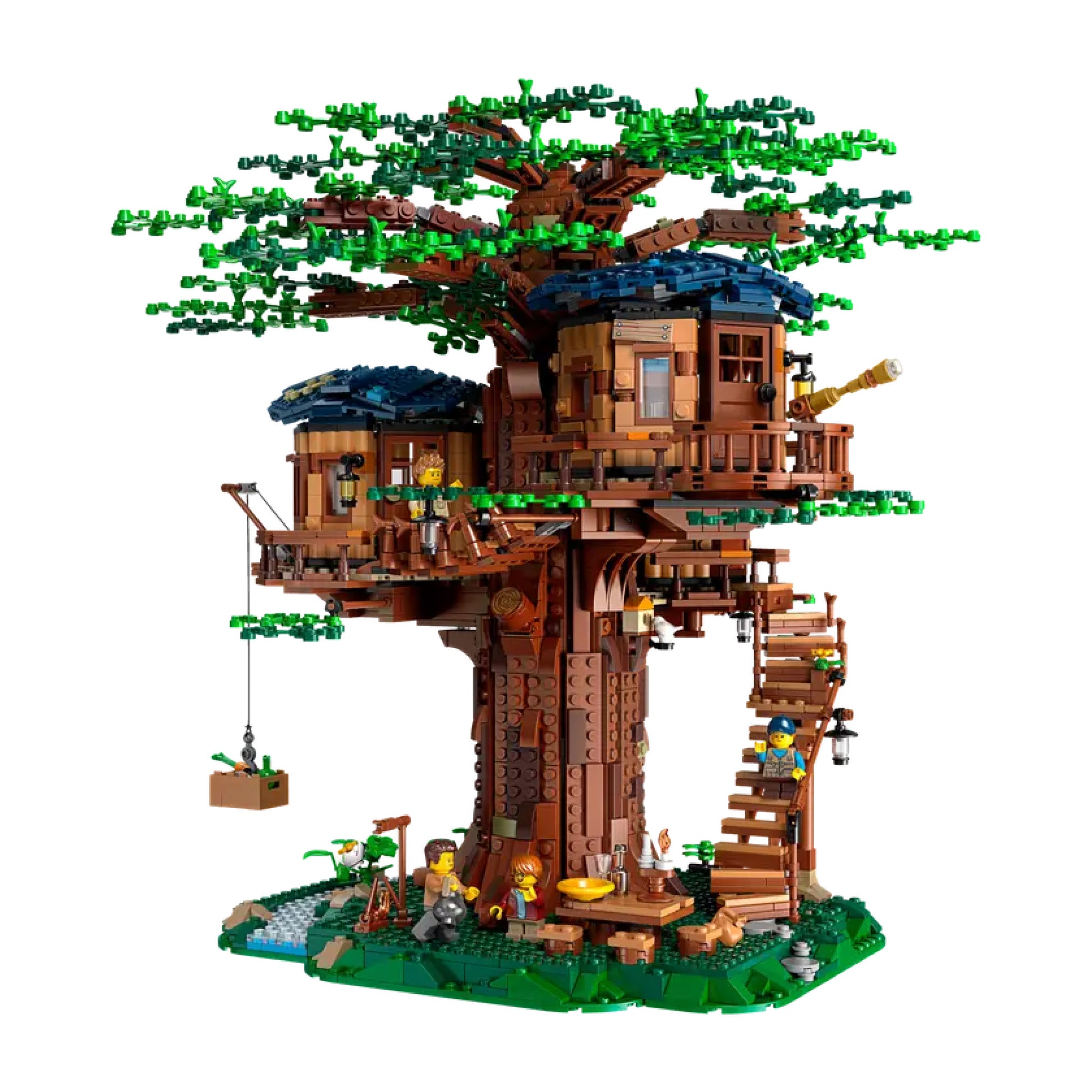 Build, display and play with this intricately detailed, 3,036-piece LEGO® Ideas Tree House, Set 21318. A complex build for experienced LEGO builders that all the family will love to play with, it features a landscape base and 3 LEGO tree house cabins—a main bedroom, bathroom and kids’ room.